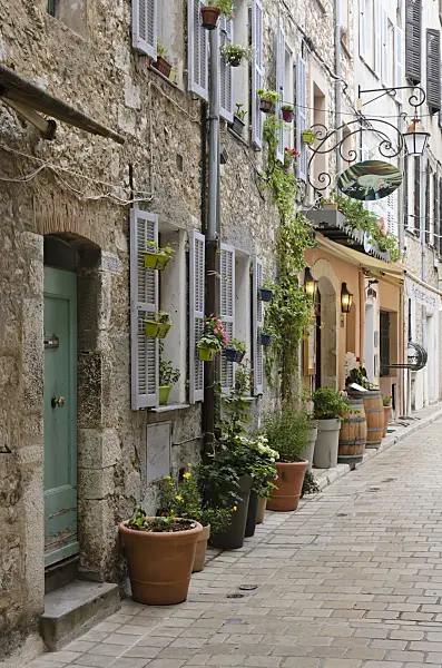 Topfgarten in einer Gasse, Puerto de Mogán, Gran Canaria, Spanien