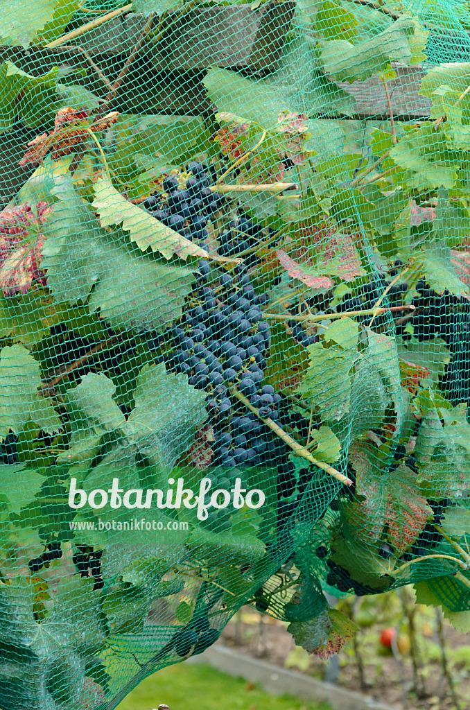 Weinrebe (Vitis vinifera) mit Vogelschutznetz