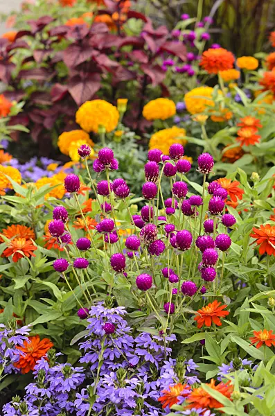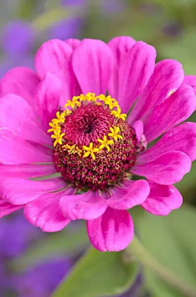 Zinnie (Zinnia violacea 'Benarys Riesen' syn. Zinnia elegans 'Benarys Riesen') und Buntschopfsalbei (Salvia viridis syn. Salvia horminum)