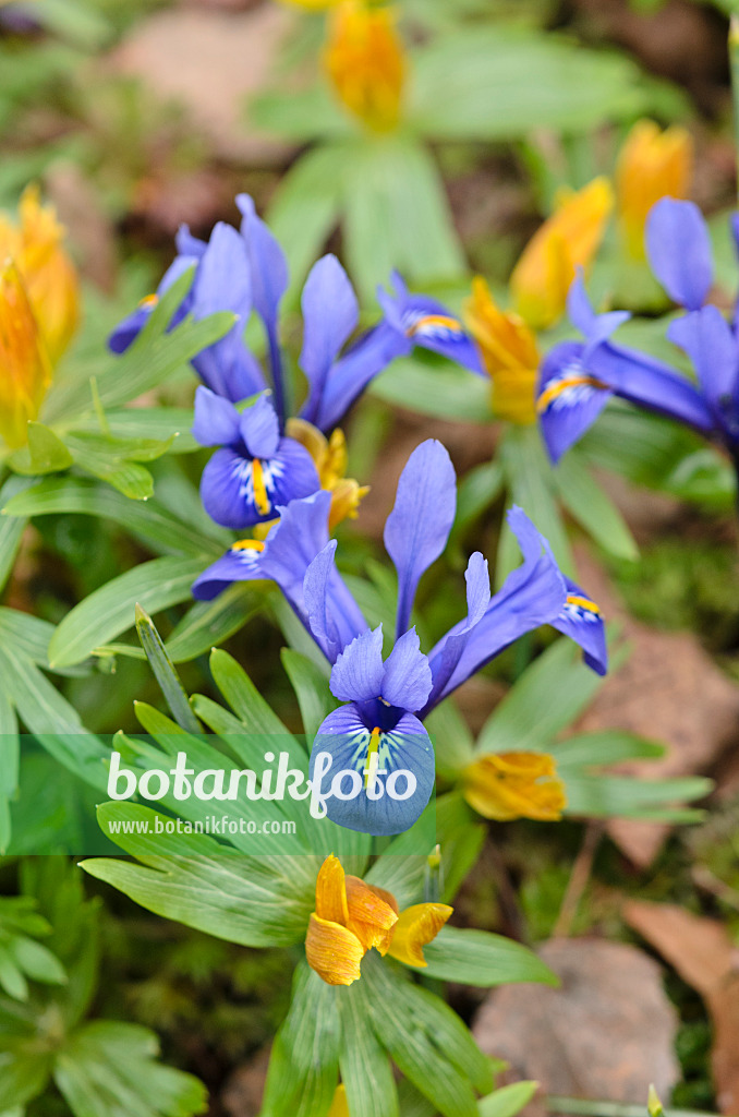 Zwergschwertlilie (Iris reticulata) und Winterling (Eranthis hyemalis)