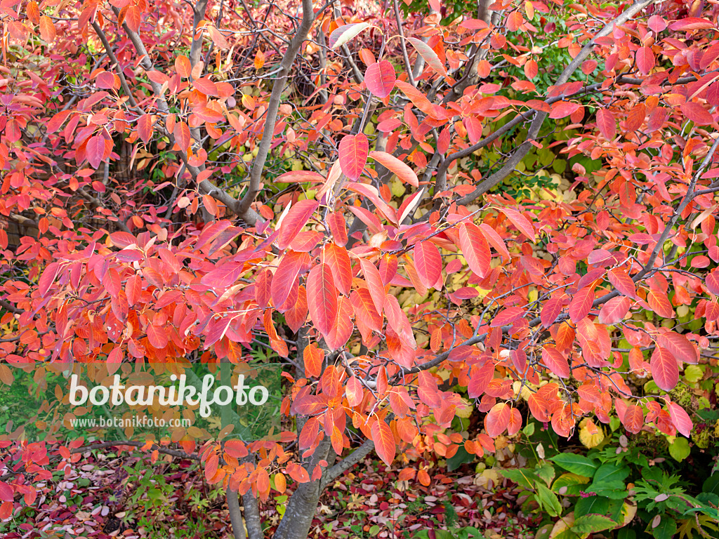 Amelanchier arborea, auch bekannt als Felsenbirne oder Baumartige Felsenbirne, ist ein kleiner Baum oder Strauch aus der Familie der Rosengewächse. Er stammt aus Nordamerika und wird bis zu 10 Meter hoch. Die Pflanze trägt weiße Blüten im Frühjahr, gefolgt von essbaren, dunkelvioletten Beeren. Die Blätter färben sich im Herbst leuchtend rot-orange. Sie ist winterhart und bevorzugt sonnige bis halbschattige Standorte mit durchlässigem Boden.