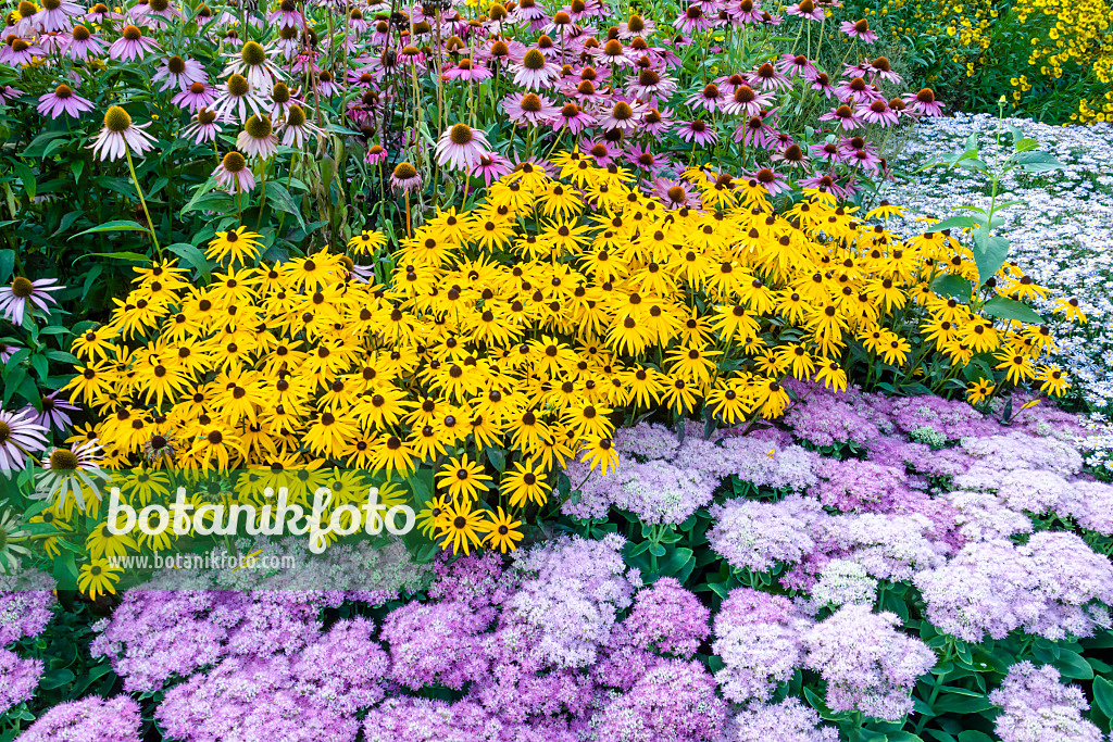 Gewöhnlicher Sonnenhut (Rudbeckia fulgida), Fetthennen (Sedum), Sonnenhüte (Echinacea) und Astern (Aster)