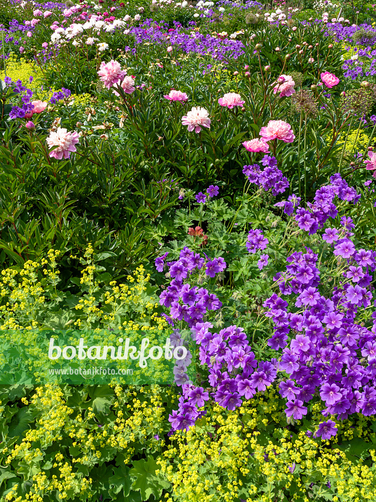 Alchemilla mollis, auch bekannt als Frauenmantel, ist eine mehrjährige Staude mit gelbgrünen Blüten und rundlichen, behaarten Blättern. Die Pflanze bevorzugt sonnige bis halbschattige Standorte und feuchte, gut durchlässige Böden. Sie ist pflegeleicht, winterhart und wird oft in Gärten als Bodendecker oder Rabattenpflanze verwendet. Die Blätter sammeln oft Tautropfen, was ihnen einen besonderen Charme verleiht.