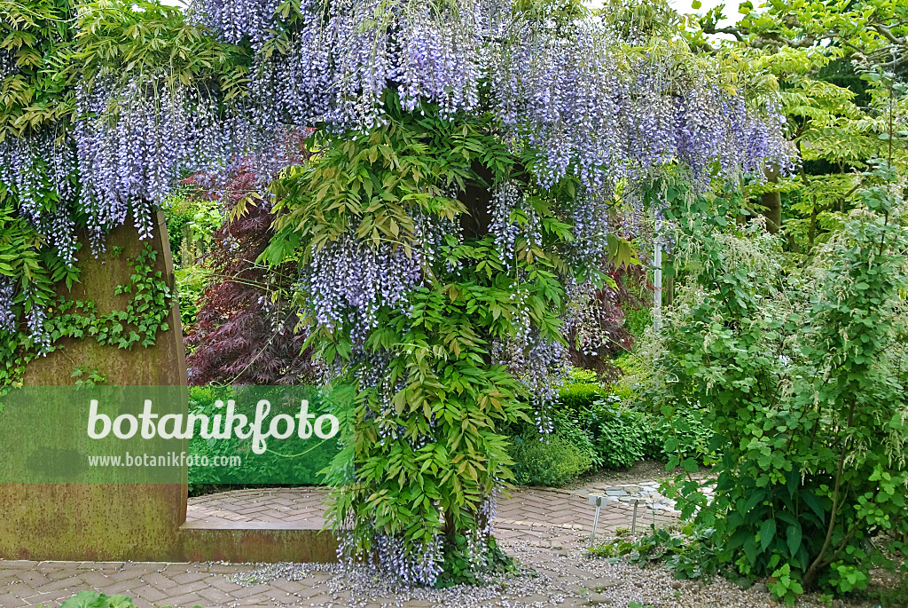 Azalee (Rhododendron) und Blauregen (Wisteria)