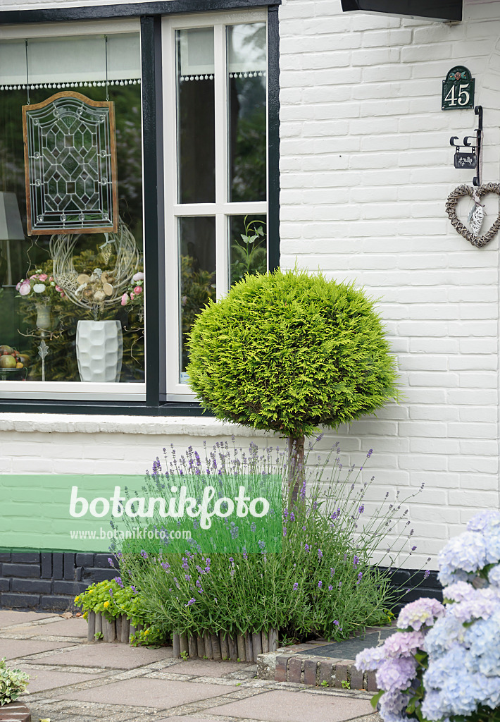 Lawsons Scheinzypresse (Chamaecyparis lawsoniana 'Yvonne') und Echter Lavendel (Lavandula angustifolia)