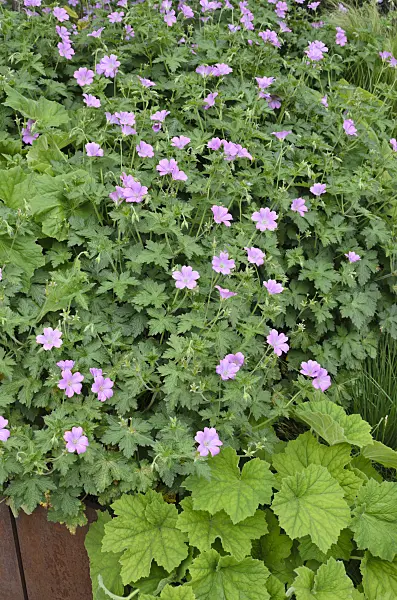 Blutroter Storchschnabel (Geranium sanguineum) und Polsterglockenblume (Campanula poscharskyana)