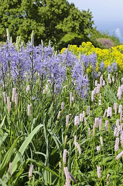 Camassia leichtlinii 'Caerulea' und Schlangenknöterich (Bistorta officinalis syn. Polygonum bistorta)