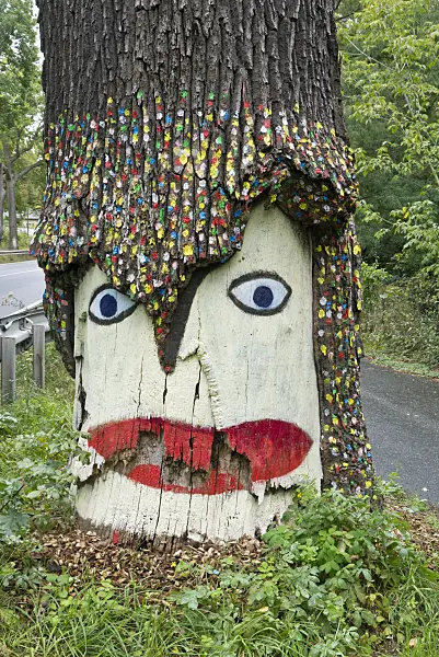 Von Bibern angenagte Bäume an der gefrorenen Oder, Nationalpark Unteres Odertal, Deutschland