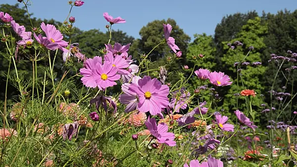 Gelbe Kosmee (Cosmos sulphureus) und Biene (Apis)