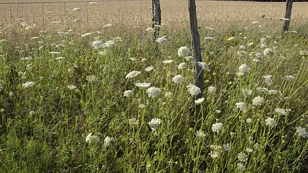 False sunflowers (Heliopsis helianthoides) and China asters (Callistephus) at a garden fence