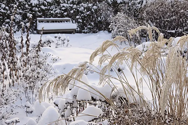 Snowy perennial garden