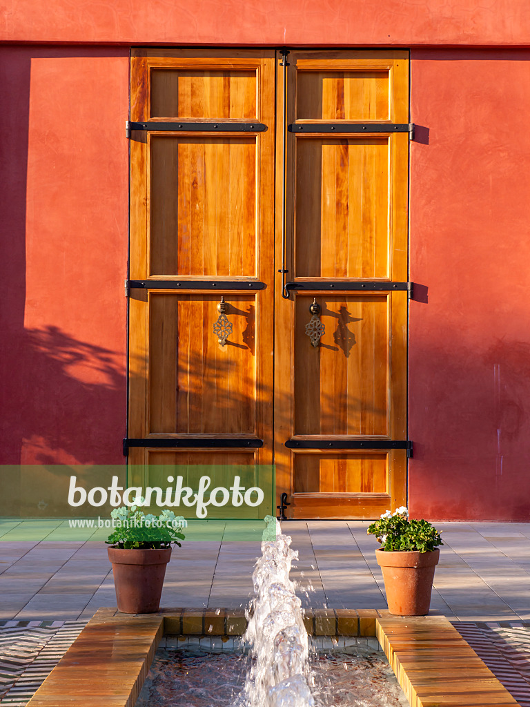 Fountain with petunias (Petunia) and pelargoniums (Pelargonium)