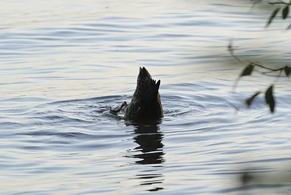 Northern mallard (Anas platyrhynchos) with blue-green algae