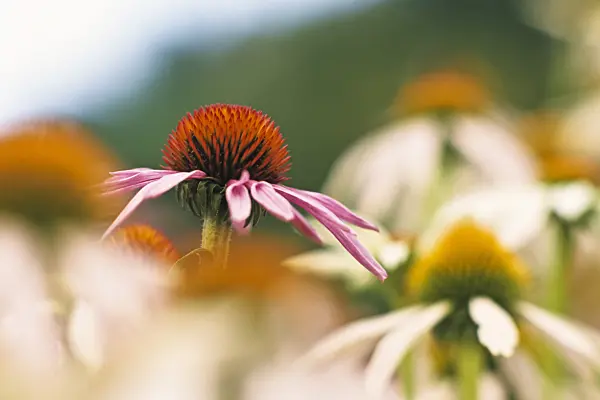 Pale purple cone flower (Echinacea pallida) and bee (Apis)
