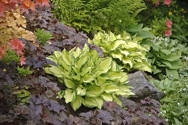 Plantain lilies (Hosta) in a rockery
