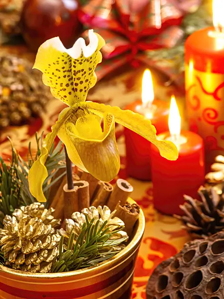 Chinese star anise (Illicium verum) with Christmas decoration