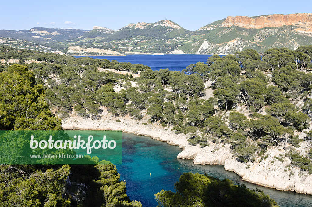 Aleppo pines (Pinus halepensis) at Calanque de Port-Pin, Calanques National Park, France