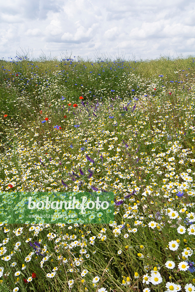 Oxeye daisy (Leucanthemum vulgare), tufted vetch (Vicia cracca) and cornflower (Centaurea cyanus)