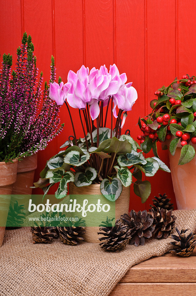 • 548038 - Cyclamen, silver groundsel (Senecio cineraria) and common heather (Calluna)