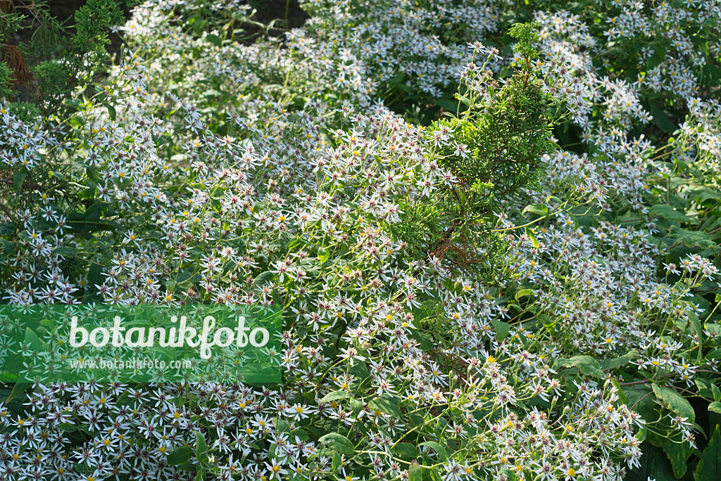 513102 - Asters (Aster) in a natural garden with a raised bed