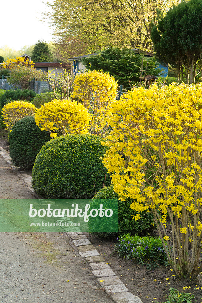 Ornamental onion (Allium) and common boxwood (Buxus sempervirens) with spiral shape