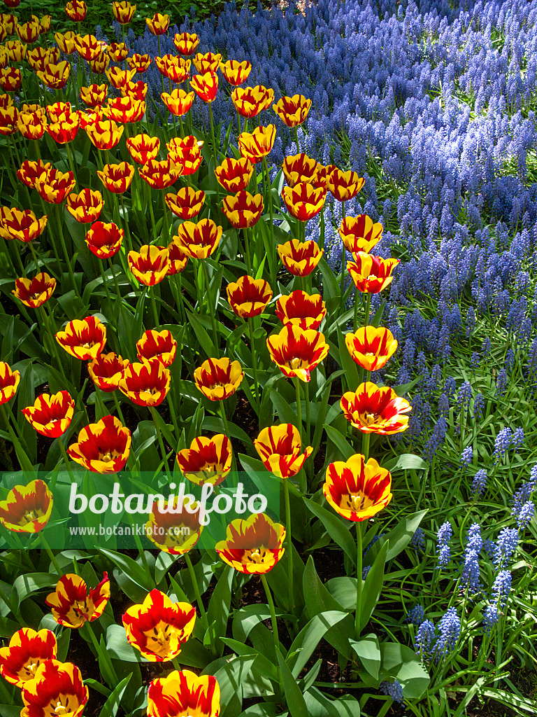 Grape hyacinths (Muscari) and tulips (Tulipa)