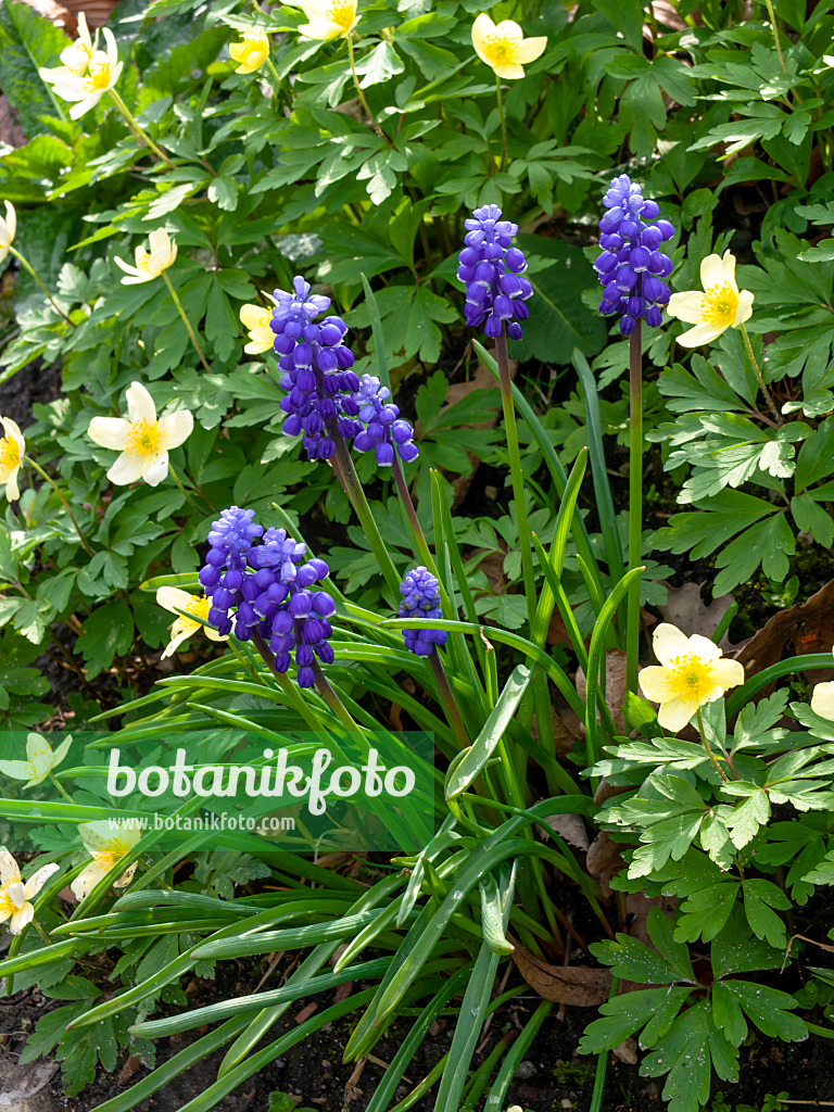 Armenian grape hyacinth (Muscari armeniacum) and windflower (Anemone x lipsiensis)