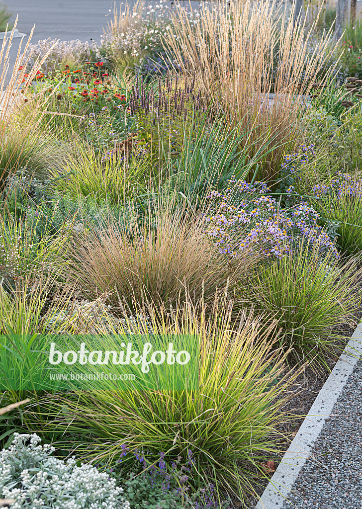 Autumn moor grass (Sesleria autumnalis) and reed grass (Calamagrostis x acutiflora 'Waldenbuch')