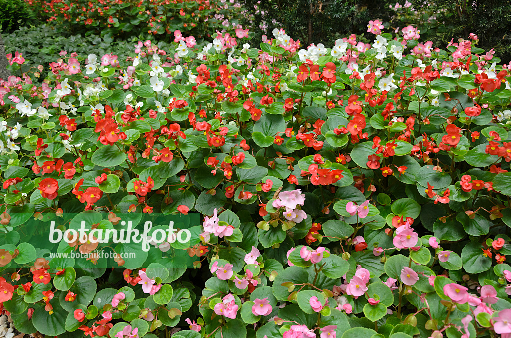 Begonia semperflorens, commonly known as wax begonia, is a popular flowering plant known for its continuous blooms. It features glossy, waxy leaves and small flowers in shades of pink, red, or white. Thrives in partial shade to full sun, prefers well-drained soil, and is drought-tolerant. Often used in gardens, borders, or containers. Low-maintenance and suitable for beginners.