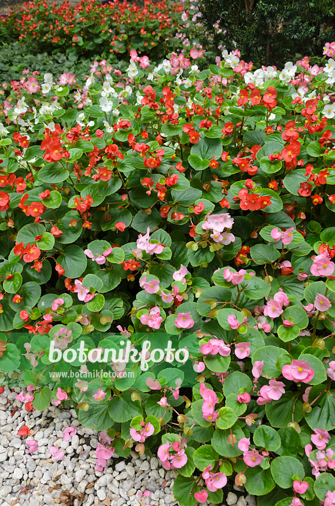 Begonia semperflorens, commonly known as wax begonia, is a popular flowering plant known for its continuous blooms. It features glossy, waxy leaves and small flowers in shades of pink, red, or white. Thrives in partial shade to full sun, prefers well-drained soil, and is drought-tolerant. Often used in gardens, borders, or containers. Low-maintenance and suitable for beginners.