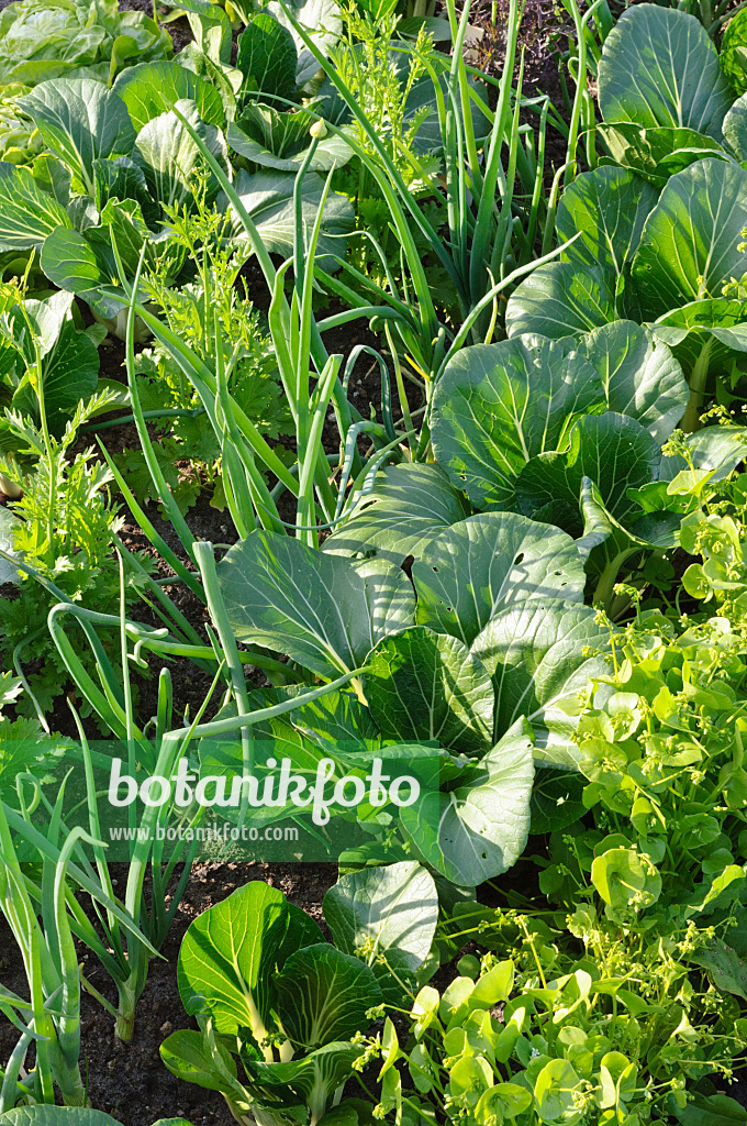 Chinese mustard (Brassica juncea), garden onion (Allium cepa) and pac choi (Brassica rapa subsp. chinensis)