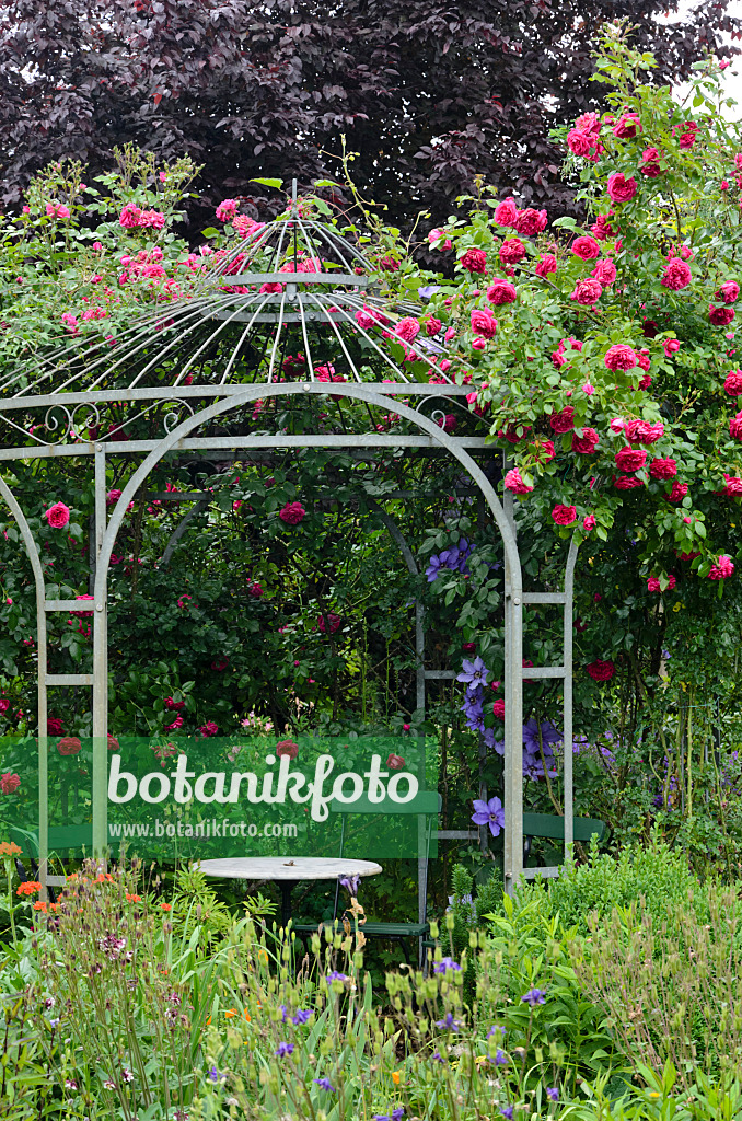 • 534523 - Garden phlox (Phlox paniculata) and rose (Rosa) with garden pavilion