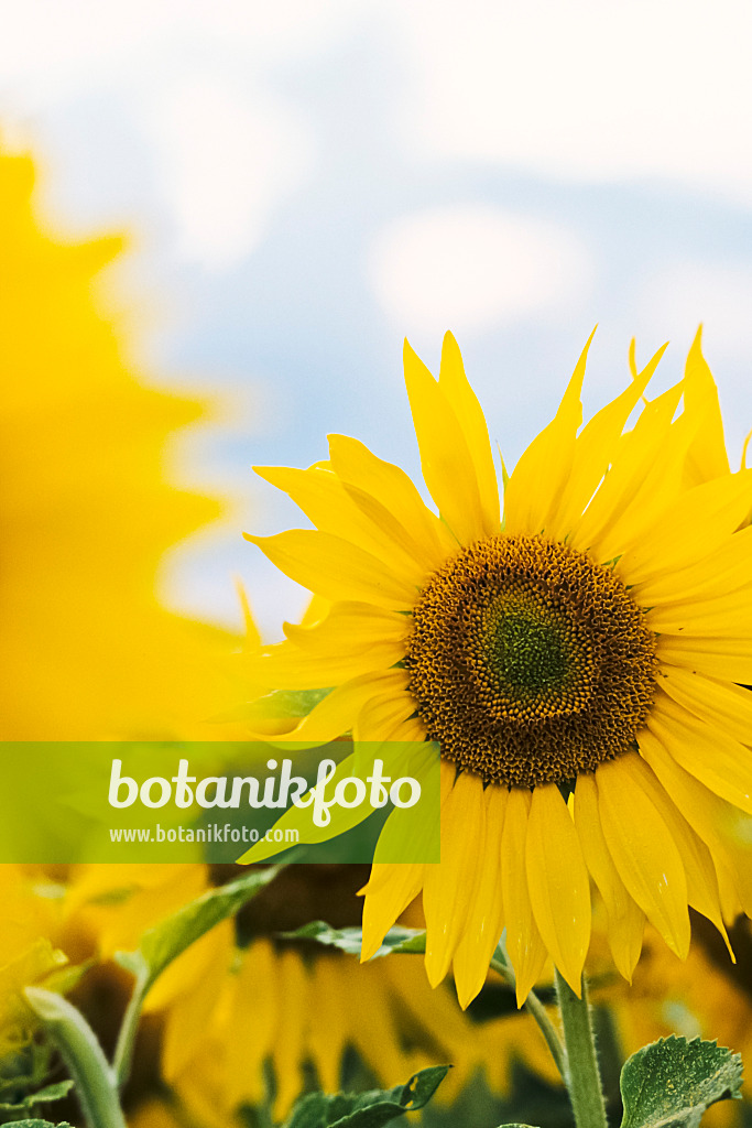 Helianthus annuus, commonly known as the sunflower, is an annual plant native to North America. It features large, bright yellow flower heads that follow the sun (heliotropism). Sunflowers grow up to 3 meters tall and produce edible seeds rich in oil. They thrive in full sun and well-drained soil, often used for ornamental, agricultural, and ecological purposes.
