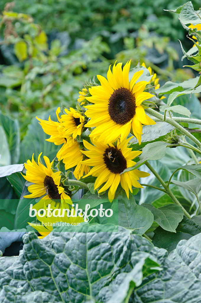 Common sunflower (Helianthus annuus) in a vegetable garden