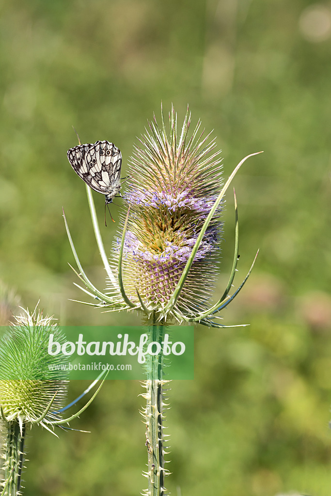 Common teasel (Dipsacus fullonum) and marbled white (Melanargia galathea)