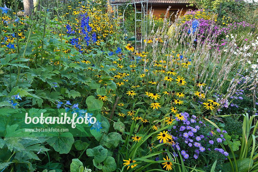 Cone flowers (Rudbeckia), larkspurs (Delphinium) and asters (Aster)