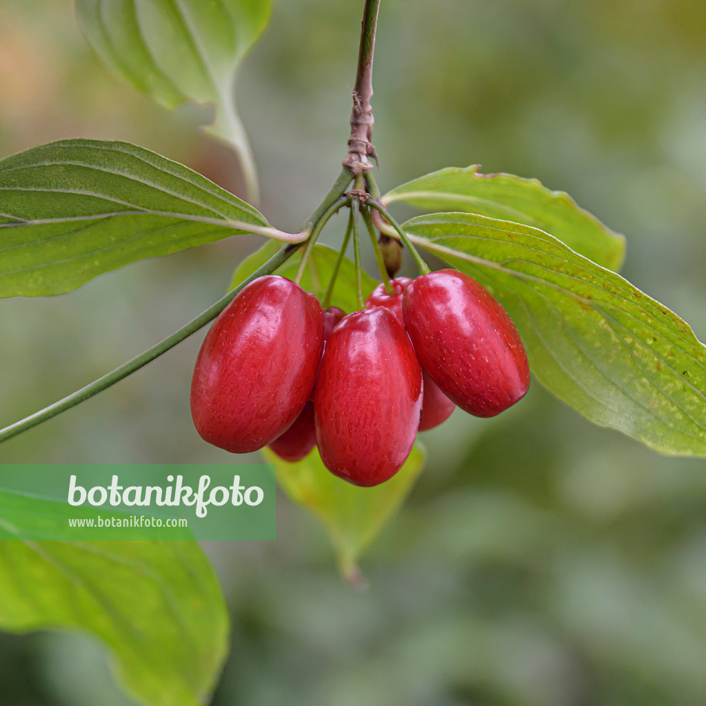Cornus mas, commonly known as Cornelian cherry, is a deciduous shrub or small tree native to Europe and Asia. It produces small yellow flowers in early spring before the leaves appear, followed by edible red berries in late summer. The fruit is tart and often used in jams, syrups, and alcoholic beverages. The plant is valued for its ornamental appeal, hardiness, and drought tolerance. It grows up to 5-12 meters tall and thrives in well-drained soils with full sun to partial shade.