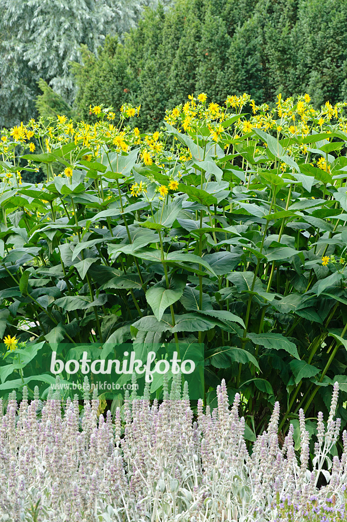 Cup plant (Silphium perfoliatum) and lamb's ears (Stachys byzantina)