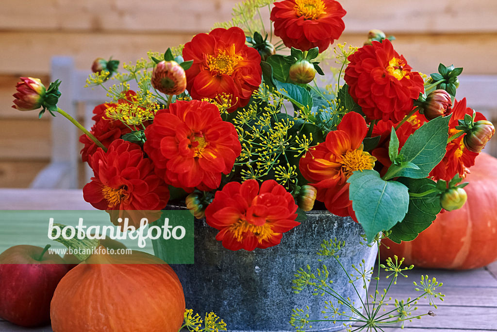Dahlia (Dahlia) and dill (Anethum graveolens)