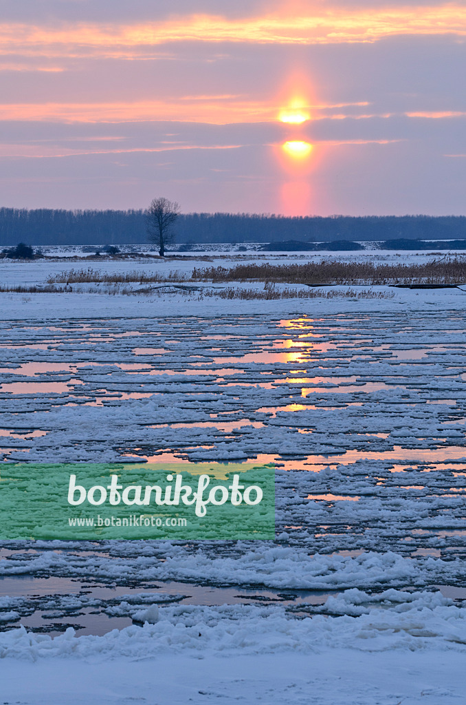Drifting ice on Elbe River, Flusslandschaft Elbe Biosphere Reserve, Germany