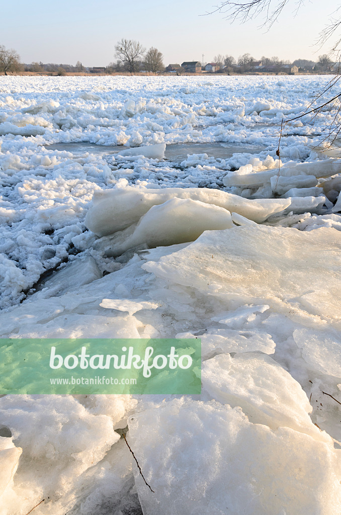 Drifting ice on Oder River, Lower Oder Valley National Park, Germany