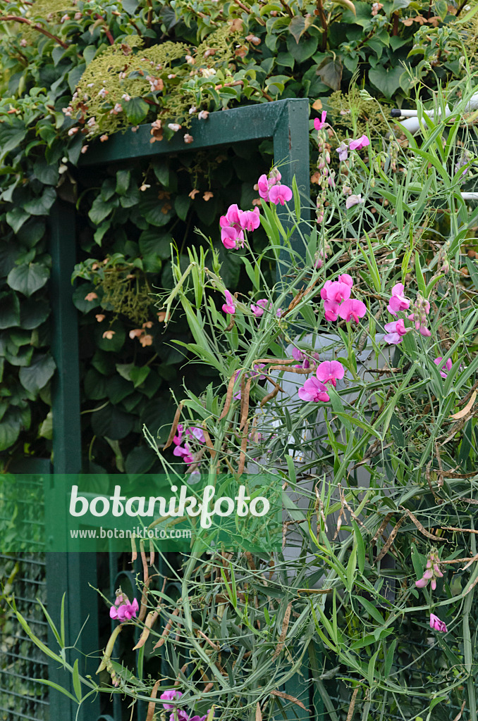 Everlasting pea (Lathyrus latifolius) at a garden gate
