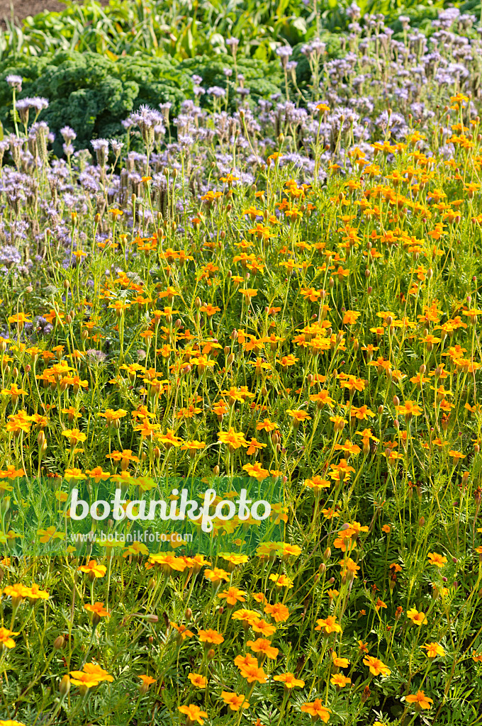 French marigolds (Tagetes patula 'Single Gold') as green manure in a vegetable garden