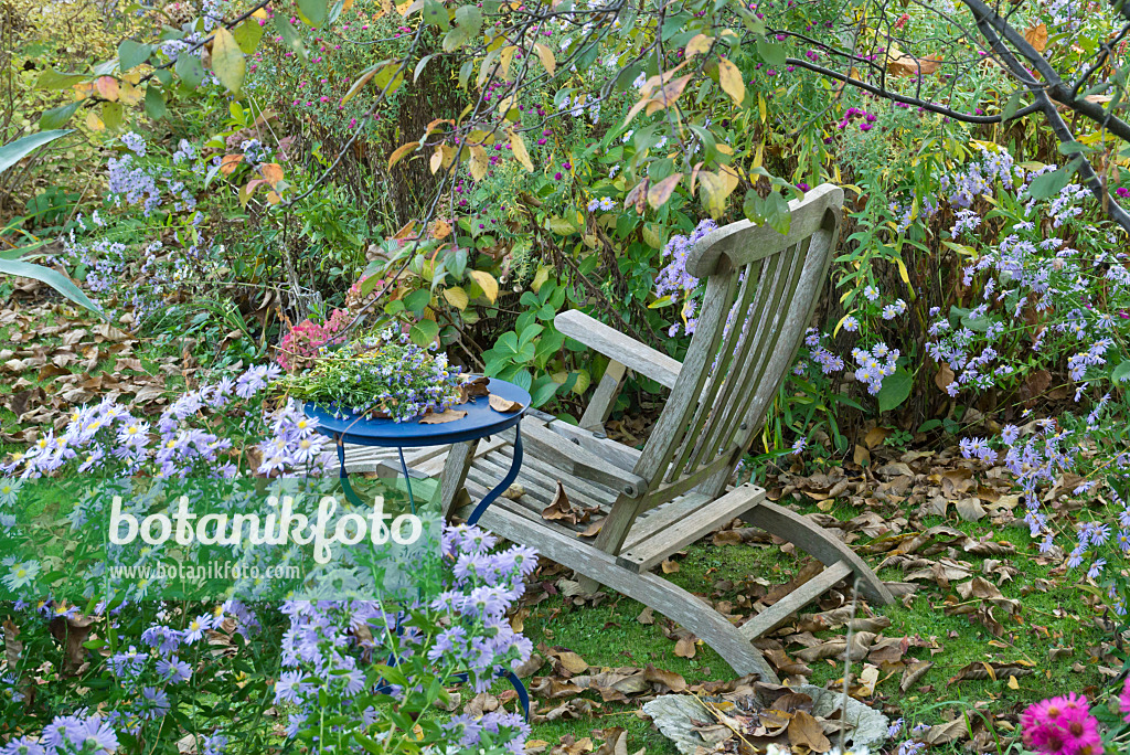 Garden chair in a perennial garden