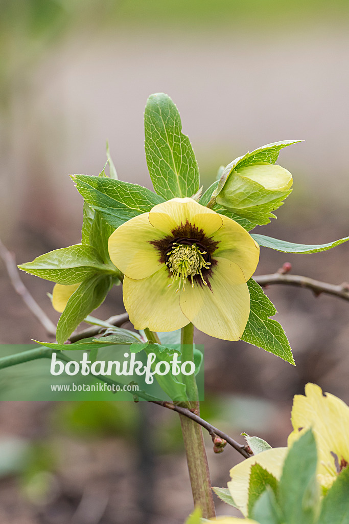 Hellebore (Helleborus x hybridus 'Harvington Yellow with Maroon Eye')