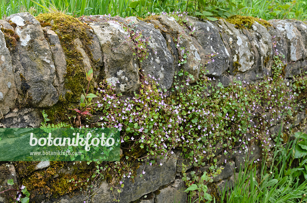 Ivy-leaved toadflax (Cymbalaria muralis) on a mossy stone wall