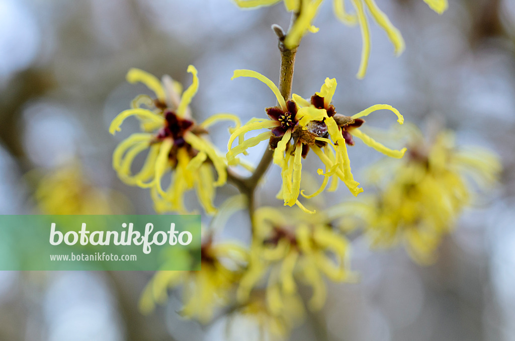 Hamamelis japonica, commonly known as Japanese witch hazel, is a deciduous shrub native to Japan. It blooms in late winter to early spring with fragrant, spidery yellow flowers. The leaves turn vibrant shades of yellow, orange, and red in autumn. It prefers well-drained soil and partial to full sun. Often used in gardens for its ornamental value and winter interest.