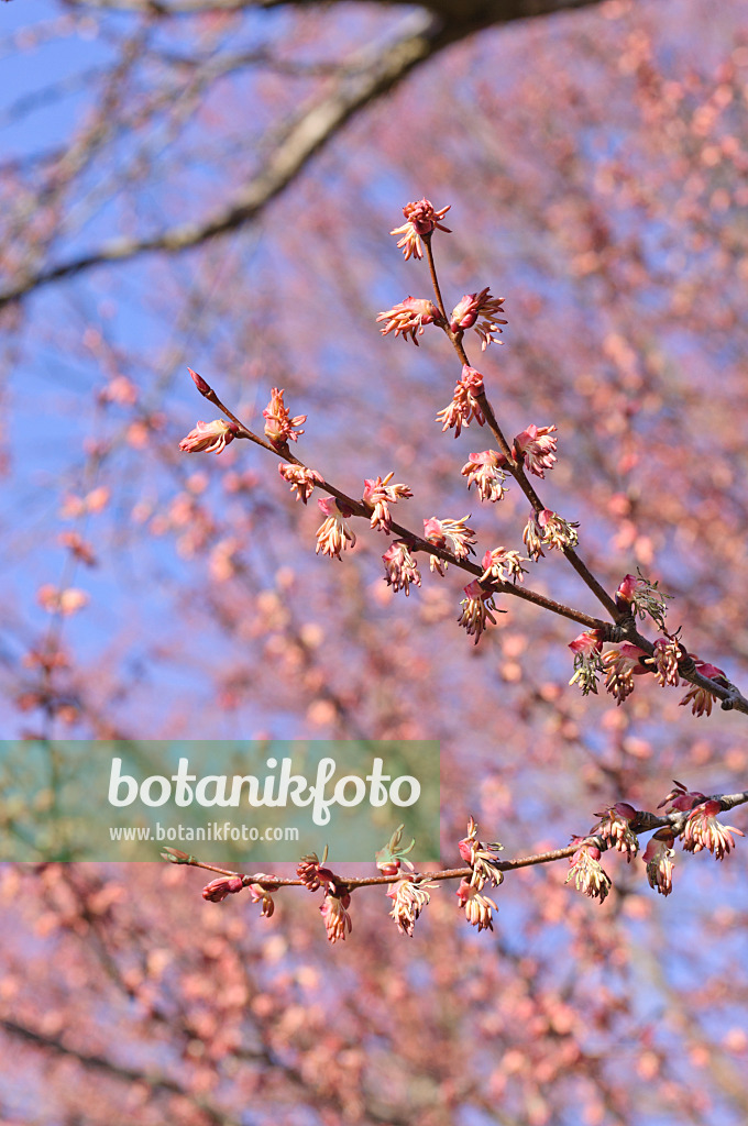 Katsura tree (Cercidiphyllum japonicum) with male flowers