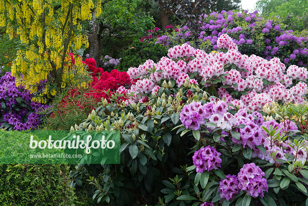 556146 - (laburnums) (Laburnum) and rhododendrons (Rhododendron)