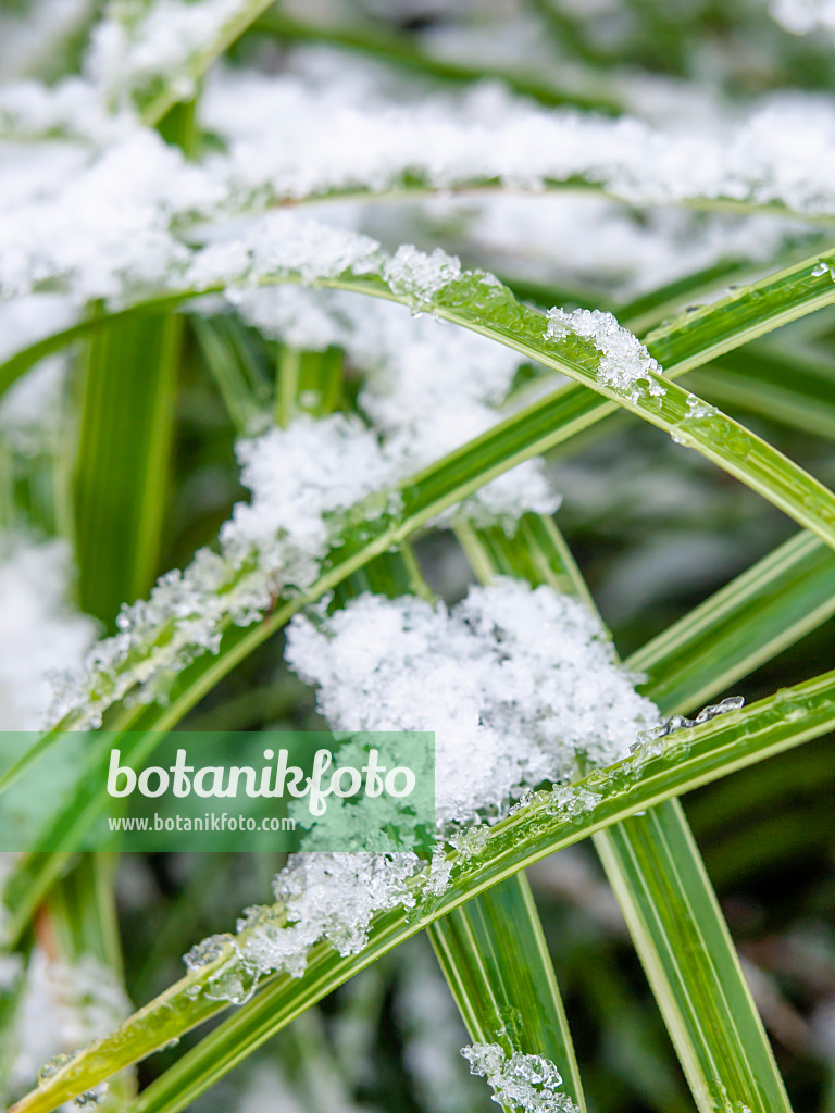 Carex morrowii, commonly known as Japanese sedge or Morrow's sedge, is a perennial evergreen grass-like plant native to Japan. It features narrow, arching green or variegated leaves and grows in clumps up to 30 cm tall. Thriving in partial shade and moist, well-drained soil, it is often used in gardens for ground cover or borders. It produces small, inconspicuous brown flowers in spring. Low-maintenance and deer-resistant, it is popular in landscaping for its texture and year-round interest.